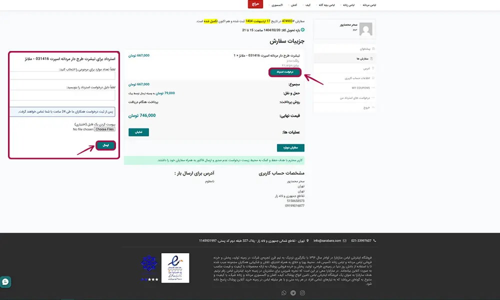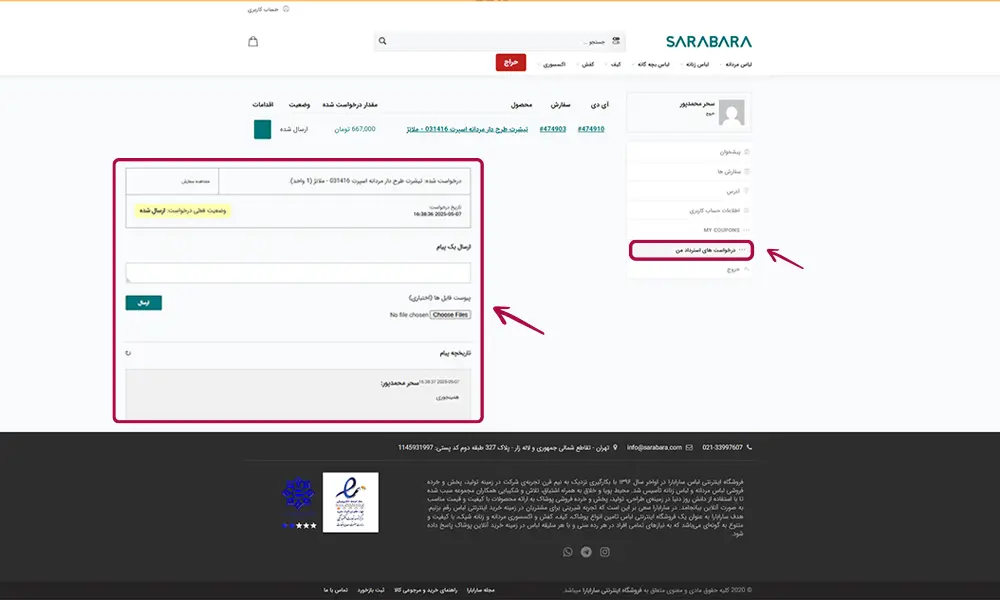 در صفحه حساب کاربری خود، با انتخاب گزینه درخواست های استرداد من، می توانید همه درخواستهای