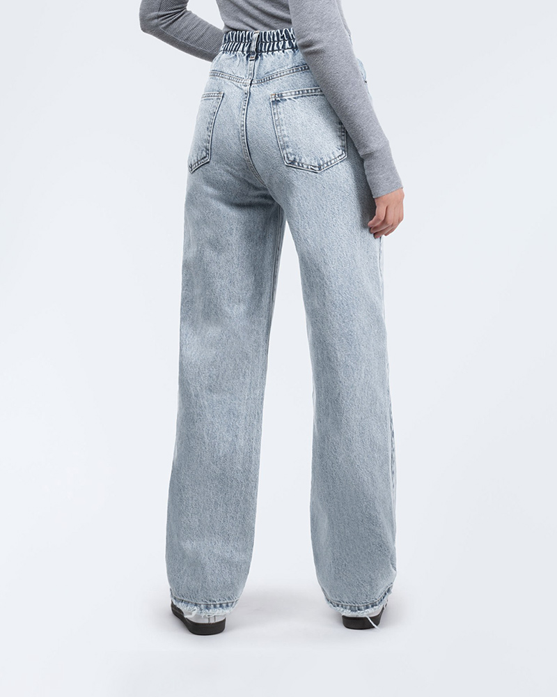 به جنس و کیفیت پارچه توجه کنید: شلوار جین با کیفیت از پارچه ای ضخیم و بادوام ساخته شده که به راحتی فرم خود را حفظ می کند.
